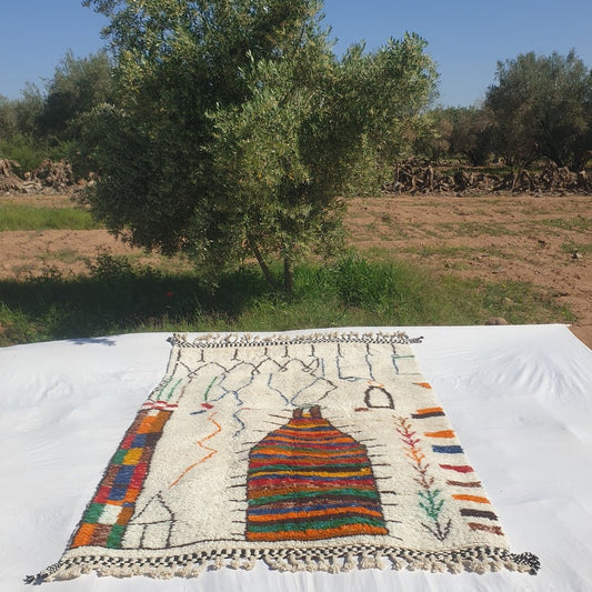 SIMIDIVIE | 8'9x5,3 pieds | 2,7x1,6m | Tapis Beniourain marocain | 100% laine fait main
