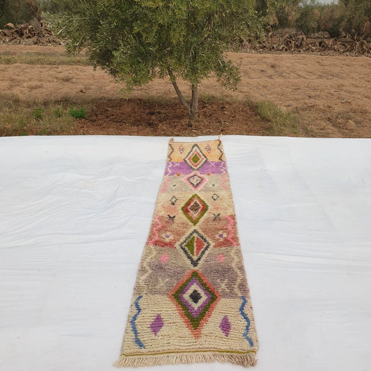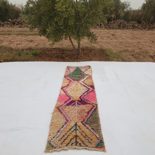 Tapis coureur marocain | Authentique coureur Boujaad | Tapis de laine coloré | Coureur berbère | Coureur de couloir | 9'8 x 2'3 pieds | 3x0,70m