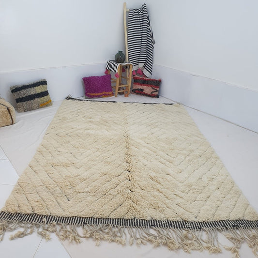 Tapis Blanc Marocain Azilal | LABIT | 5'2x3'6 pieds | 1,58x1,10m | 100% laine fait main