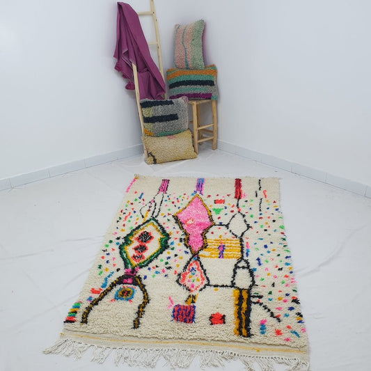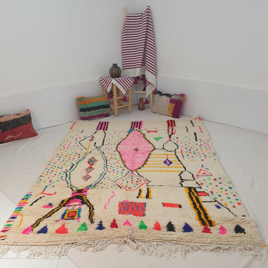 BAYDA | 9x5 pieds | 2,7x1,5m | Tapis coloré marocain | 100% laine fait main