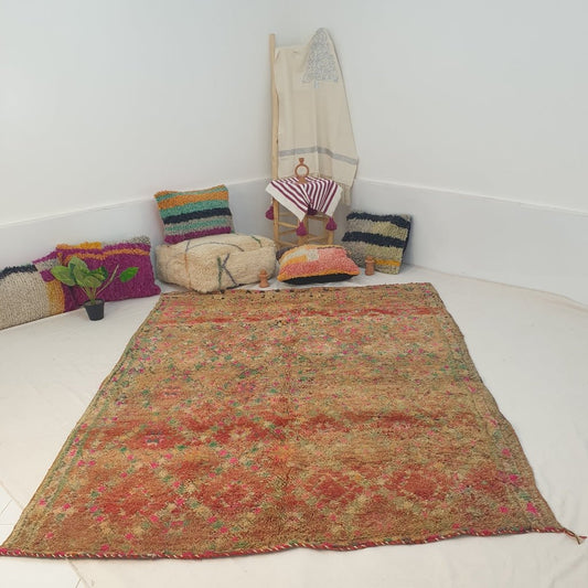 Tapis marocain VINTAGE pêche et rose | 8'x6' Pi | 2,43x1,83m | MAGHRAYA | 100% laine fait main