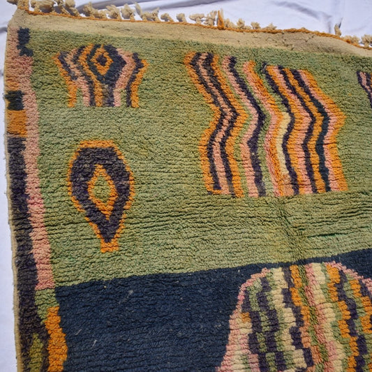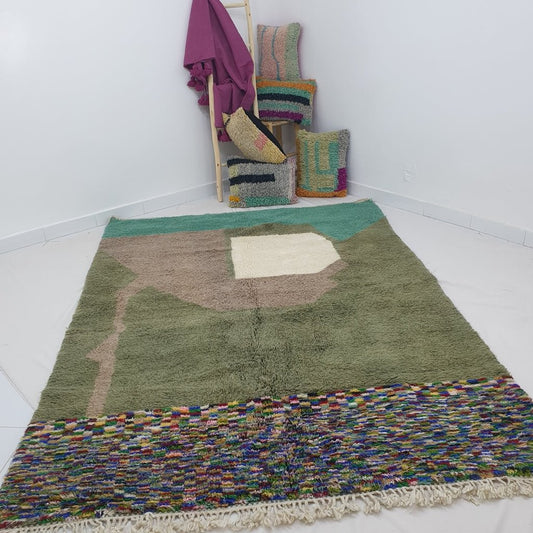 Tapis vert marocain Beni Ourain | LWAYA | 9'9" x 6'8" Pi | 3x2 m | 100% laine fait main