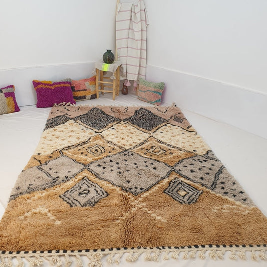 Tapis Beni Pêche Marocain | BÉNIASSIF | 10 x 7'3 pieds | 3x2,21m | 100% laine fait main