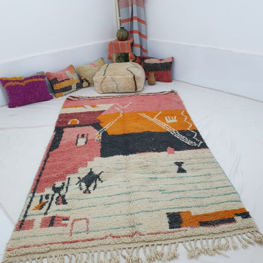 Tapis marocain Beni Ultra doux et épais | 10'4x6'1 Pi | 3,2x1,9m | KISSMI | Tapis marocain coloré Beni Mrirt | 100% laine fait main