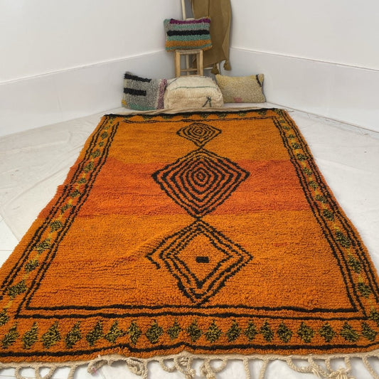 Tapis Marocain Orange Boujaad | 10'5x6'9 pieds | 3,2x2,1m | ORARDA| 100% laine fait main