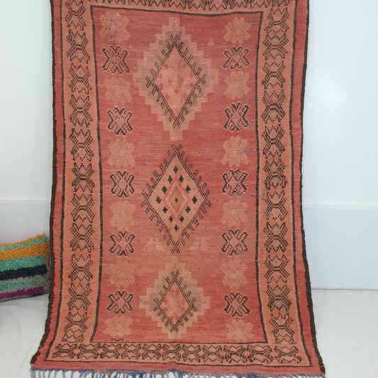 Tapis rouge VINTAGE marocain | 8'x4'9 pi | 2,44x1,48m | ZARJA | 100% laine fait main