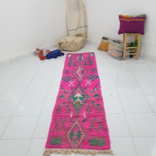 MAREH Coureur | 9'6x2'9 pieds | 2,92x0,87m | Tapis coloré marocain | 100% laine fait main