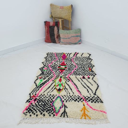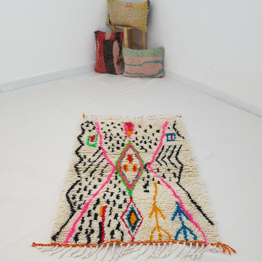 JEBID | 8'9x5 pieds | 2,72x1,53m | Tapis coloré marocain | 100% laine fait main