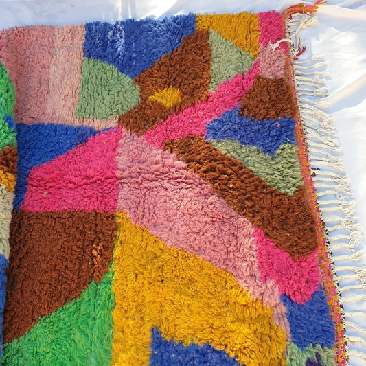 TIBIJ | 7'7x4'9 pieds | 2,34x1,50m | Tapis coloré marocain | 100% laine fait main