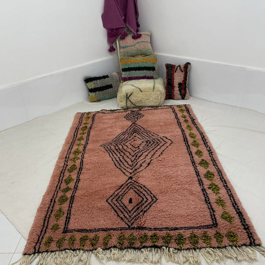 ÉZYNE | Tapis Marocain Rose Boujaad | 9'8x6'4 pieds | 3x2 m | 100% laine fait main