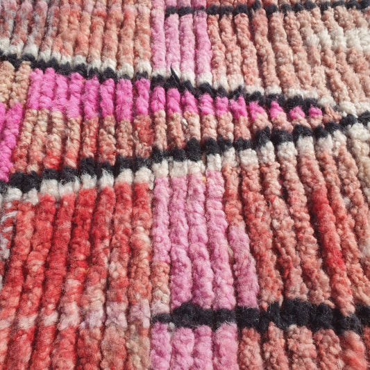Chalata | Tapis marocain rose et orange authentique doux beni ourain | 4'72x8'10 ft | 144x247 cm