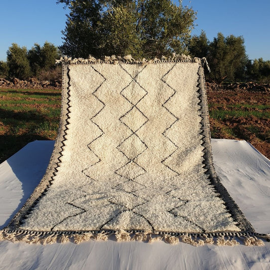 FALZA - RAGN MOROCAN 3X5 WHITE AZILAL | Authentique tapis de chambre marocaine artisanale à la main | 3'54x5'25 ft | 108x160 cm
