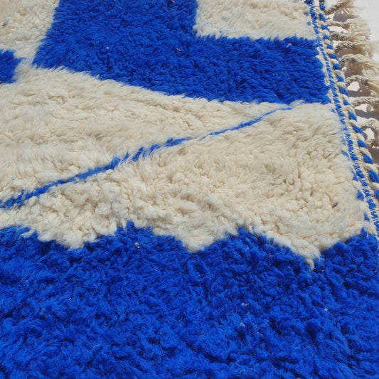 Nchoufa | Beni Ourain Moroccan Rug 3x5 ft Blue Geometric Shag | 3'28x5'28 Ft | 100x161 cm