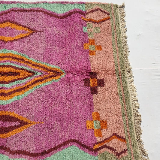 Ighla - Tapis marocain rose Boujad 5x8 | Berbère fait main avec 100% laine | 5'4x8'5 pieds | 164x258cm