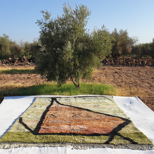 Lou | Tapis marocain Beni Mrirt Vert Ultra Doux & Épais | 9x12 pieds | 369x294 cm | Tapis marocain coloré Beni Mrirt | 100% laine fait main