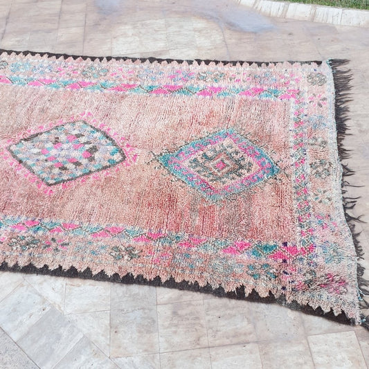 Dame | Tapis Marocain à Carreaux Rose Beni Ouarain | 8'5x5 pieds | 2,60x1,54m | Fait à la main avec de la laine 100 % authentique