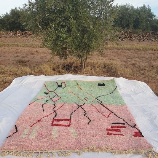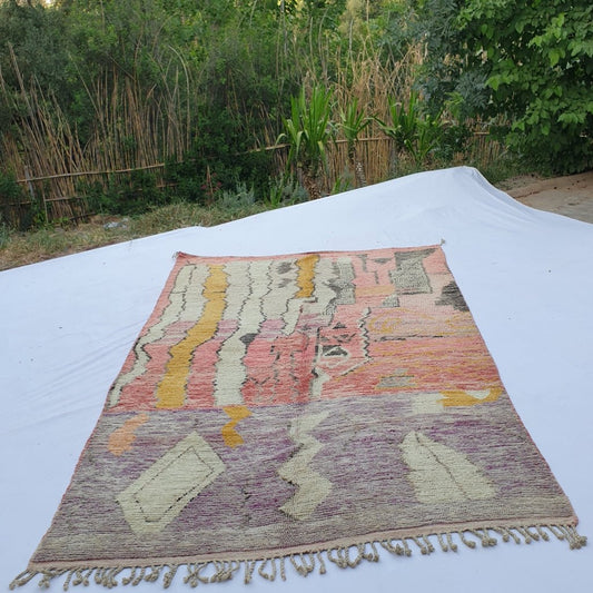 Miala - Tapis coloré marocain BENI OUARAIN pour chambre à coucher | Tapis marocain à poils longs en laine berbère authentique | 5x3'6 pi | 152x110cm