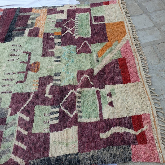 Tapis violet VINTAGE marocain | 10'9x6'3 Pi | 3,32x1,92m | MAKOLA | 100% laine fait main
