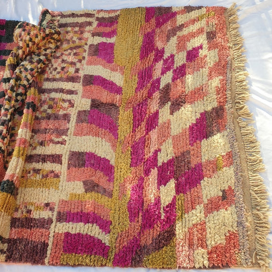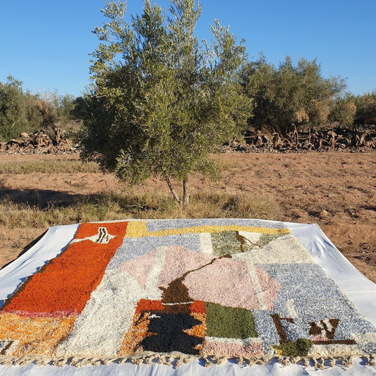 GIRY | 8x5'6 pieds | 2,4x1,7m | Tapis coloré marocain | 100% laine fait main