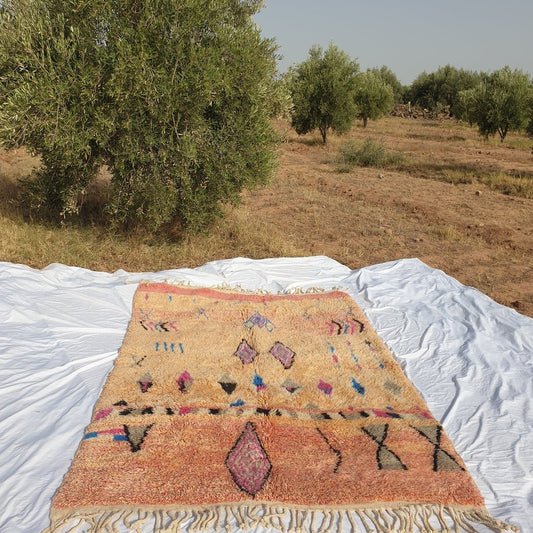 Tapis Beni marocain Tapis de salon ultra doux et épais rose pêche | 8'9x5'8 pieds | 2,70x1,76m | HACHIDA | Tapis marocain Beni Mrirt
