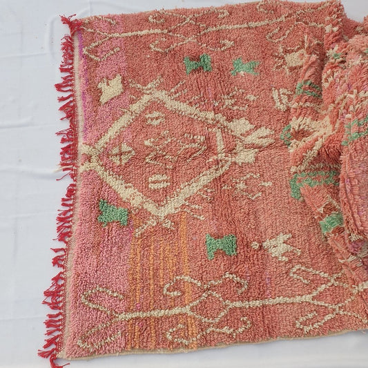Tapis Marocain Rose Style Vintage Nouvellement fabriqué Boujaad | 8x6'2" Ft | 2,45x1,90 m | KHORSSA | 100% laine fait main