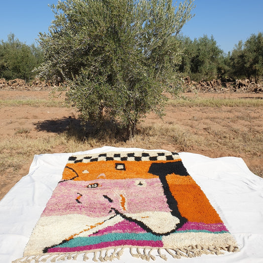 TAPIS MAROCAIN BOUJAAD | Tapis berbère marocain | Tapis orange et rose Tapis marocain | Tapis de chambre berbère authentiques faits à la main | 8'5x4'9 pieds | 2,60x1,48m