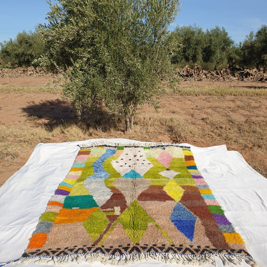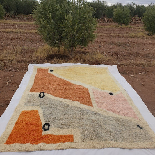 TAPIS BENI OUARAIN Tapis de salon coloré doux et épais | Tapis marocain à poils longs en laine berbère authentique | 9'7x6'6 pieds | 3x2 m | Kanya
