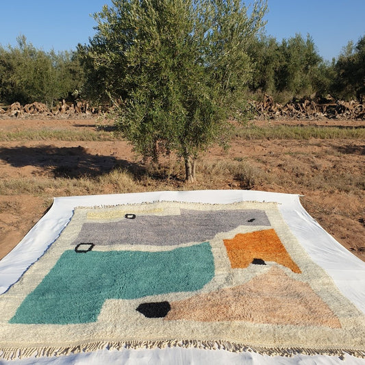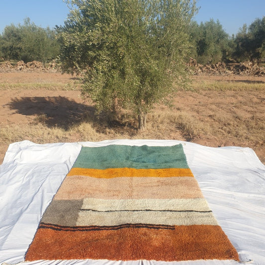 TAPIS MAROCAIN BENI fabriqué à la main | Tapis authentique et doux en laine teintée | Tapis berbère marocain | Tapis marocain en laine Kimma | 9'7x6'5 pieds | 2,96x1,98m
