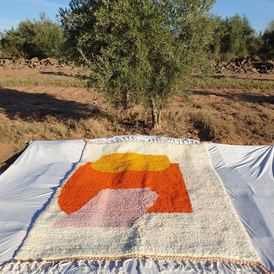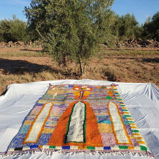 TAPIS MAROCAIN BOUJAAD | Tapis berbère marocain | Tapis Marocain Orange Jaune Rouge | Tapis de salon berbère authentique | 9'9x6'4 Pi | 3x2 m