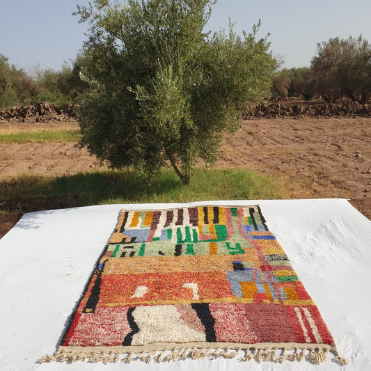Mirala - Tapis Marocain Boujaad | Tapis de chambre berbère authentique coloré fait à la main | 9x5'58 pieds | 2,75x1,70m