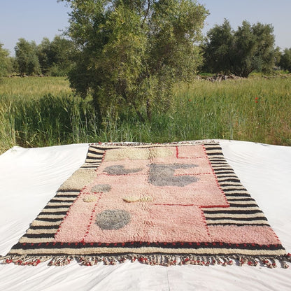 GRAOUA - ROSE 7X9 RAGN MOROCCAN BENI MRIRT LULURIEUX ULTRA SOIL et ÉPARGE | Tapis de laine à la main berbère | 7'05x9'78 ft | 215x298 cm