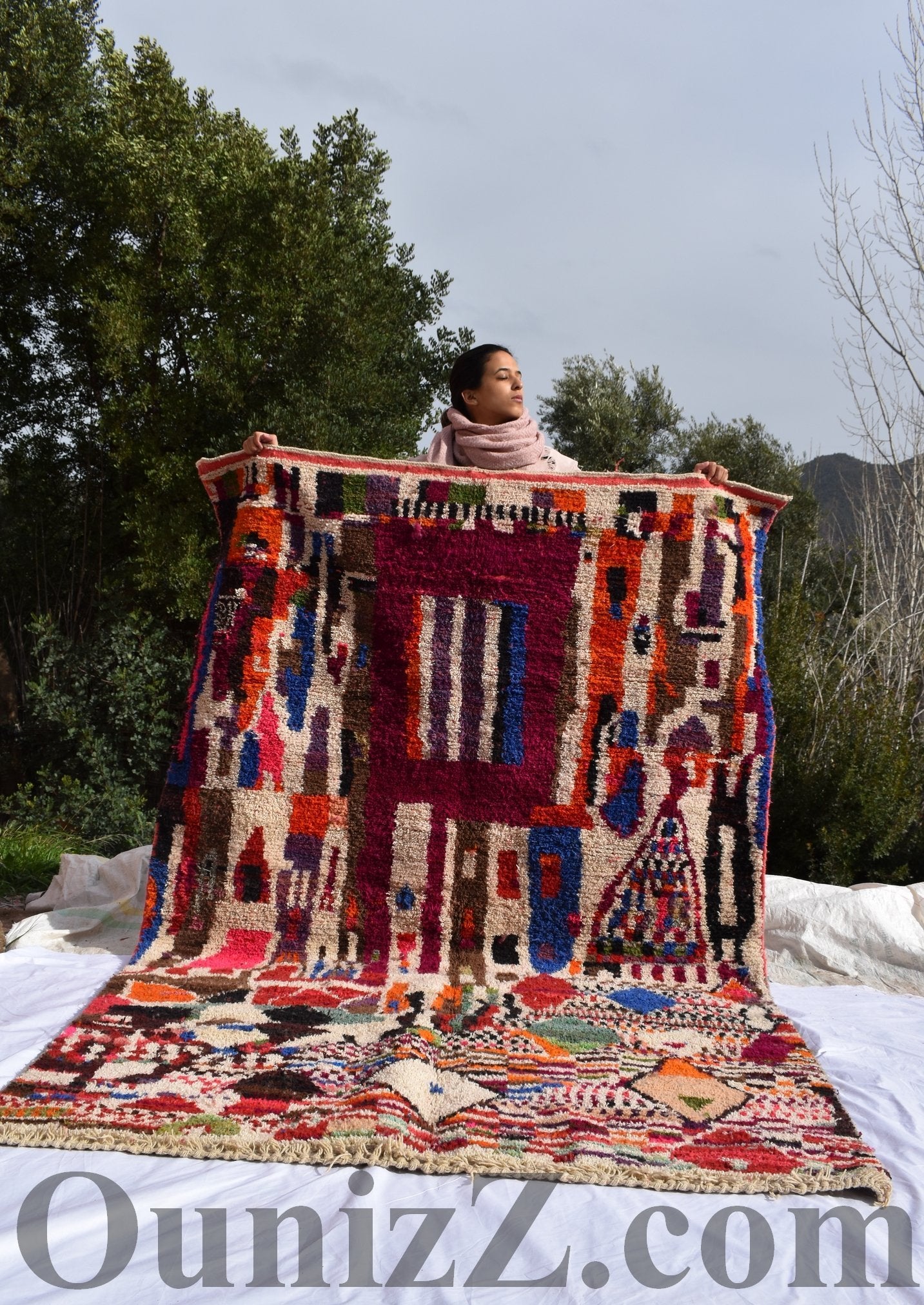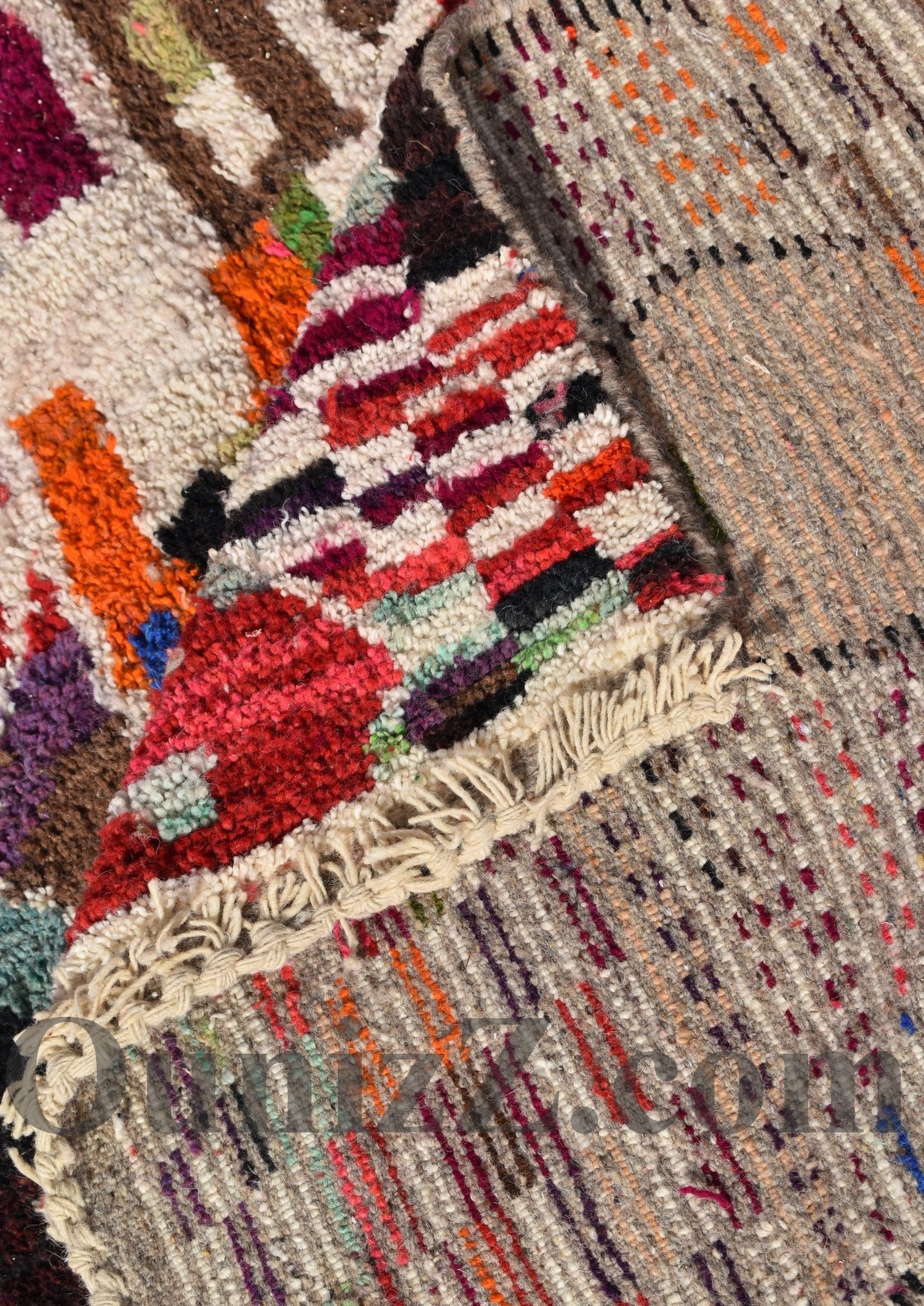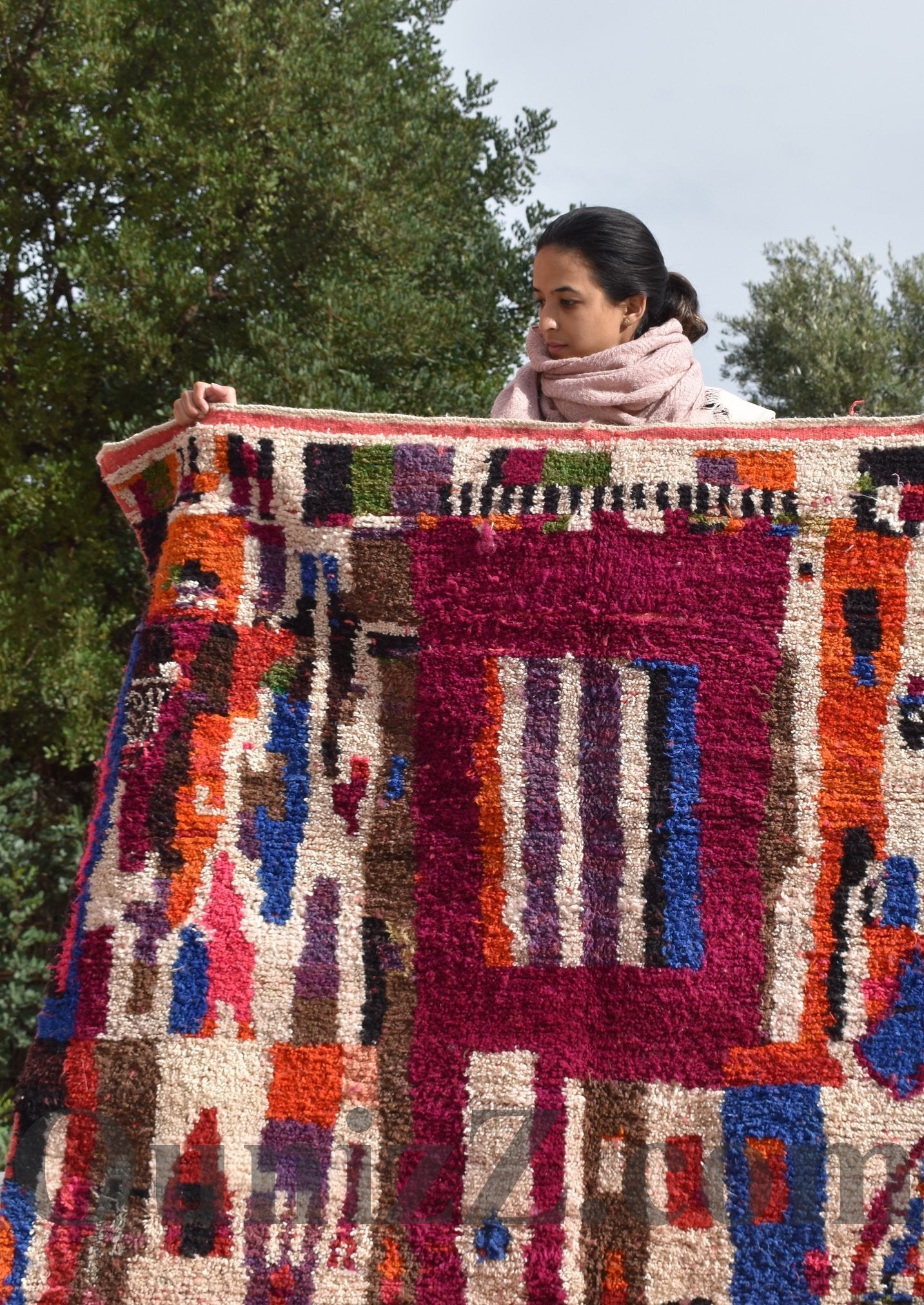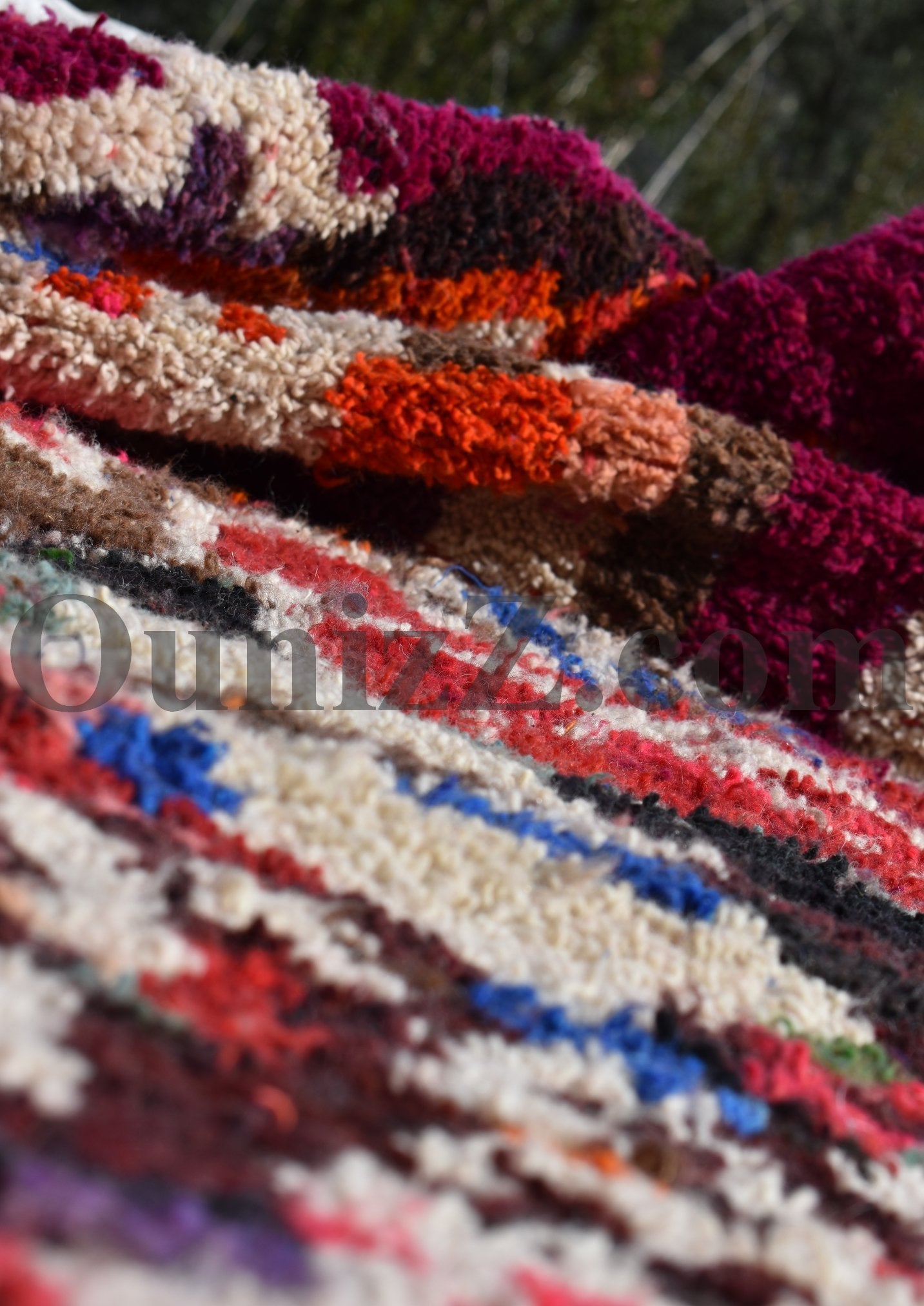 Boujaad, the Amazing Berber lightweight’s rug. The design is Inspired from the Kilim rugs. Named also Hanbal, because of its Boho, Modern, Scandinavian, and traditional Berber Moroccan style, it has only one side, it is usually used for floors or to decorate the walls of the interiors.