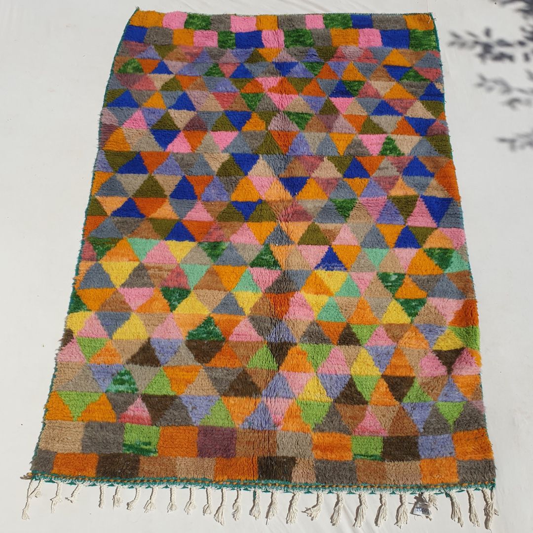 Bakira | Colorful Moroccan Rug 5x7 Authentic Beni Ourain | Handmade Berber Wool Carpet | 5'35x7'61 Ft | 163x232 cm
