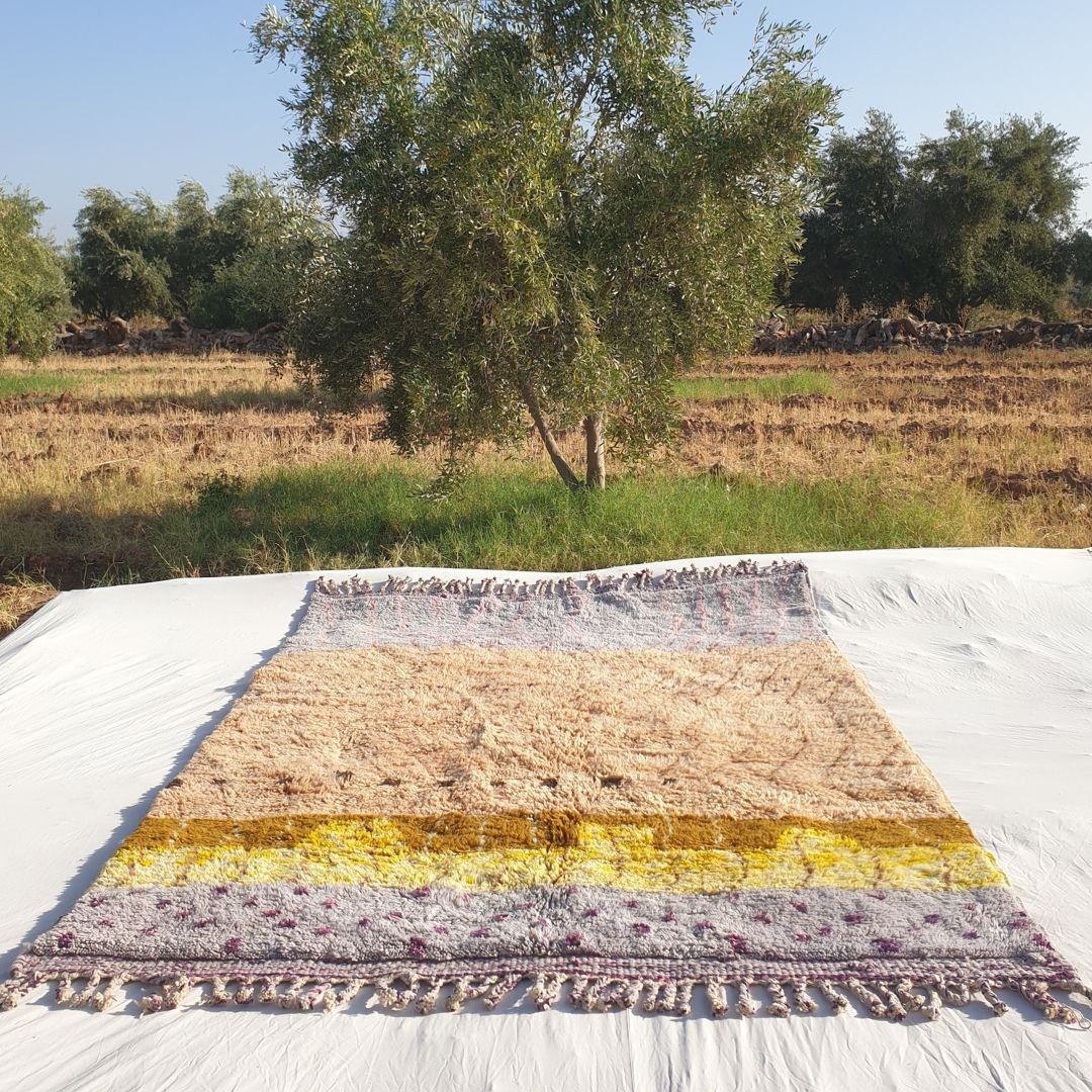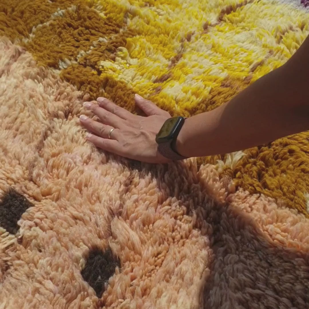 Lamane | Luxurious Golden Yellow 6x9 Moroccan Rug Plush Beni Mrirt Ultra Soft | Authentic Berber wool Beni Rug | 6'63x9'71 Ft | 202x296 cm