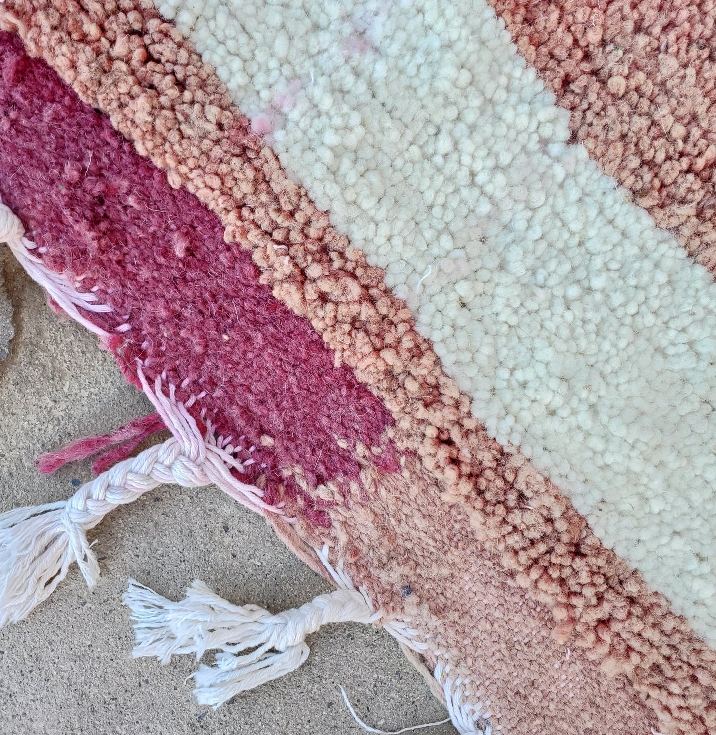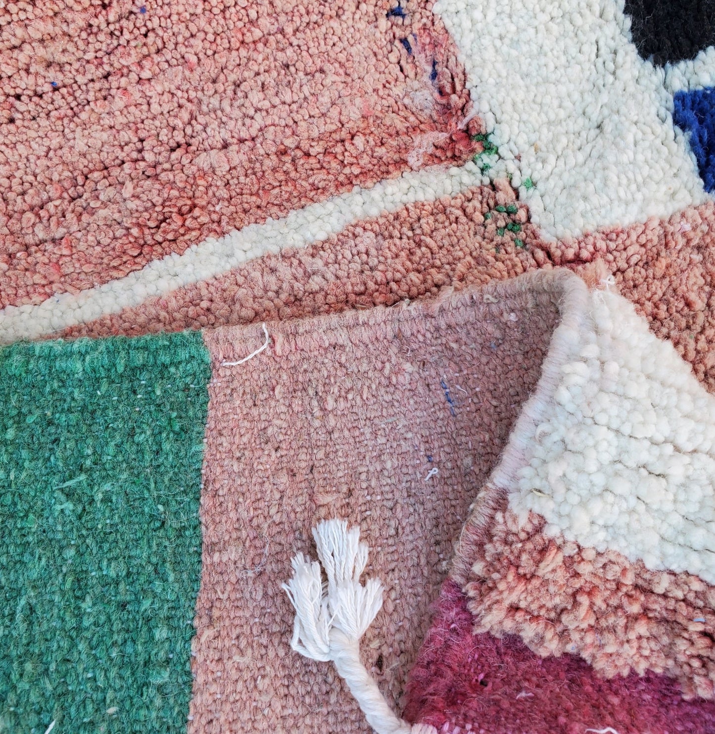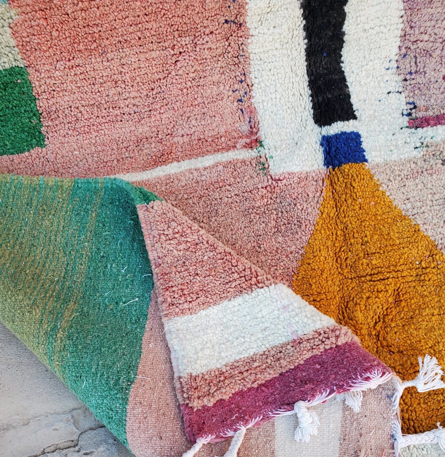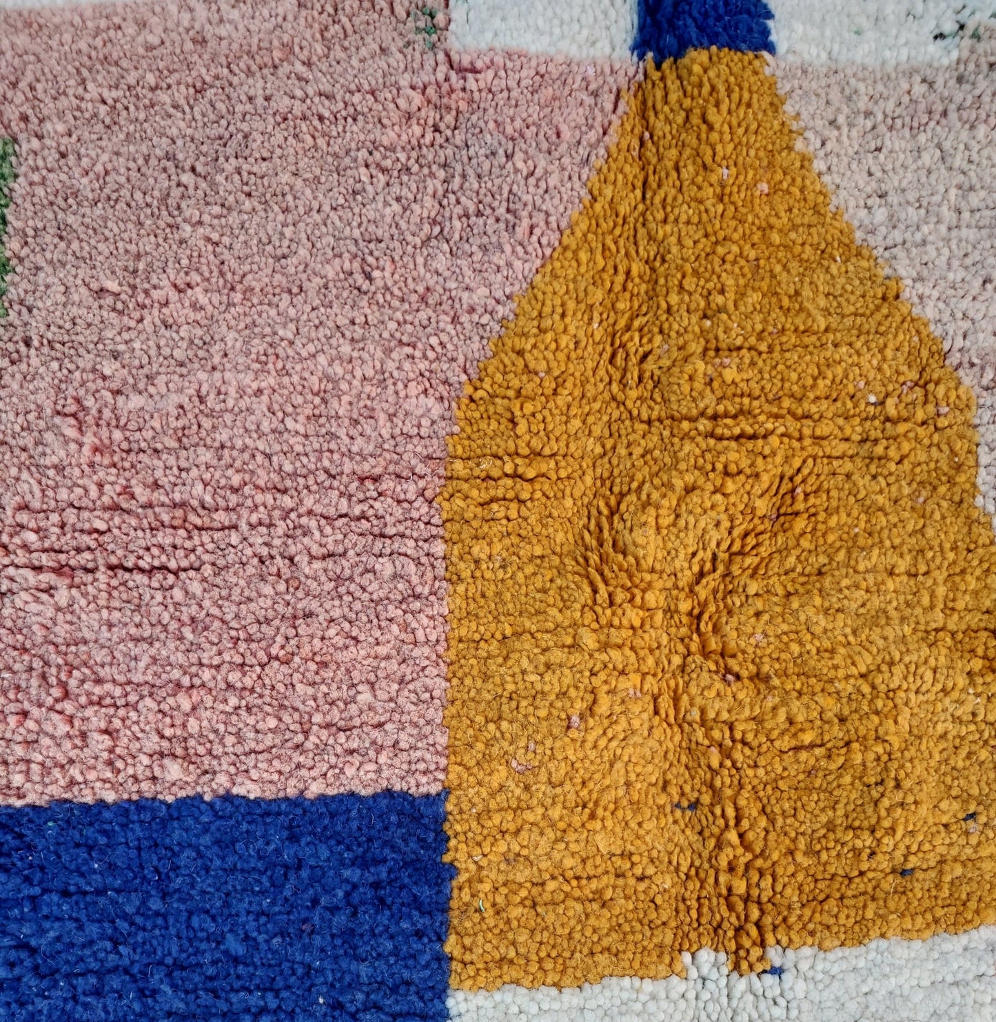 Boujaad rugs originally woven on traditional looms by Berber women in the Atlas Mountains of Morocco. These rugs are all individually handcrafted, each rug is special, unique and different, and you can never find the same pattern. They are made from natural sheep wool with natural dye, and typical knotting techniques practiced by Berber tribes - but with the knot being pulled tighter, those rugs require less wool which allows the weaver to create the intricate geometric patterns things that make Boujaad rugs famous and desired by the whole word and perfect for any indoor or outdoor style.