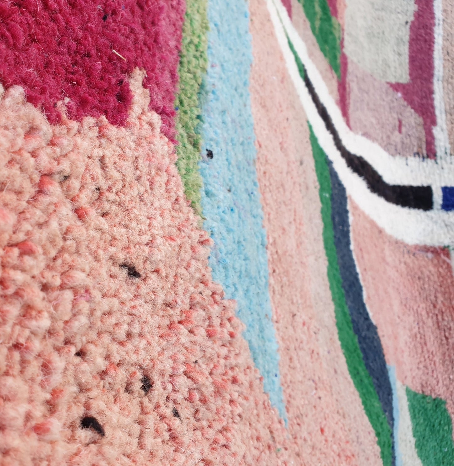 For wool Moroccan rugs, it is recommended to use a vacuum without a beater bar no more than four times a month. Wool fibers are delicate and can shed easily under harsh treatment. For detailed care instructions, please visit our Cleaning Instructions page.