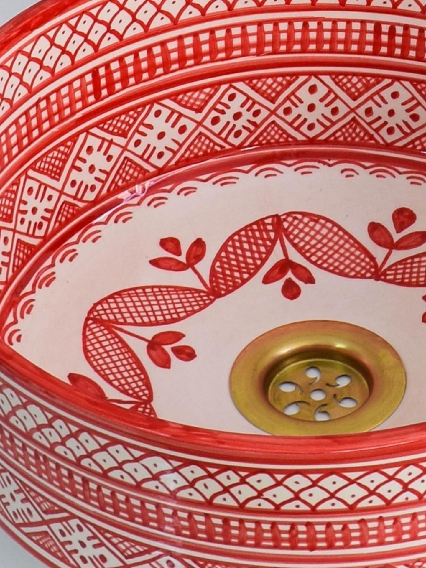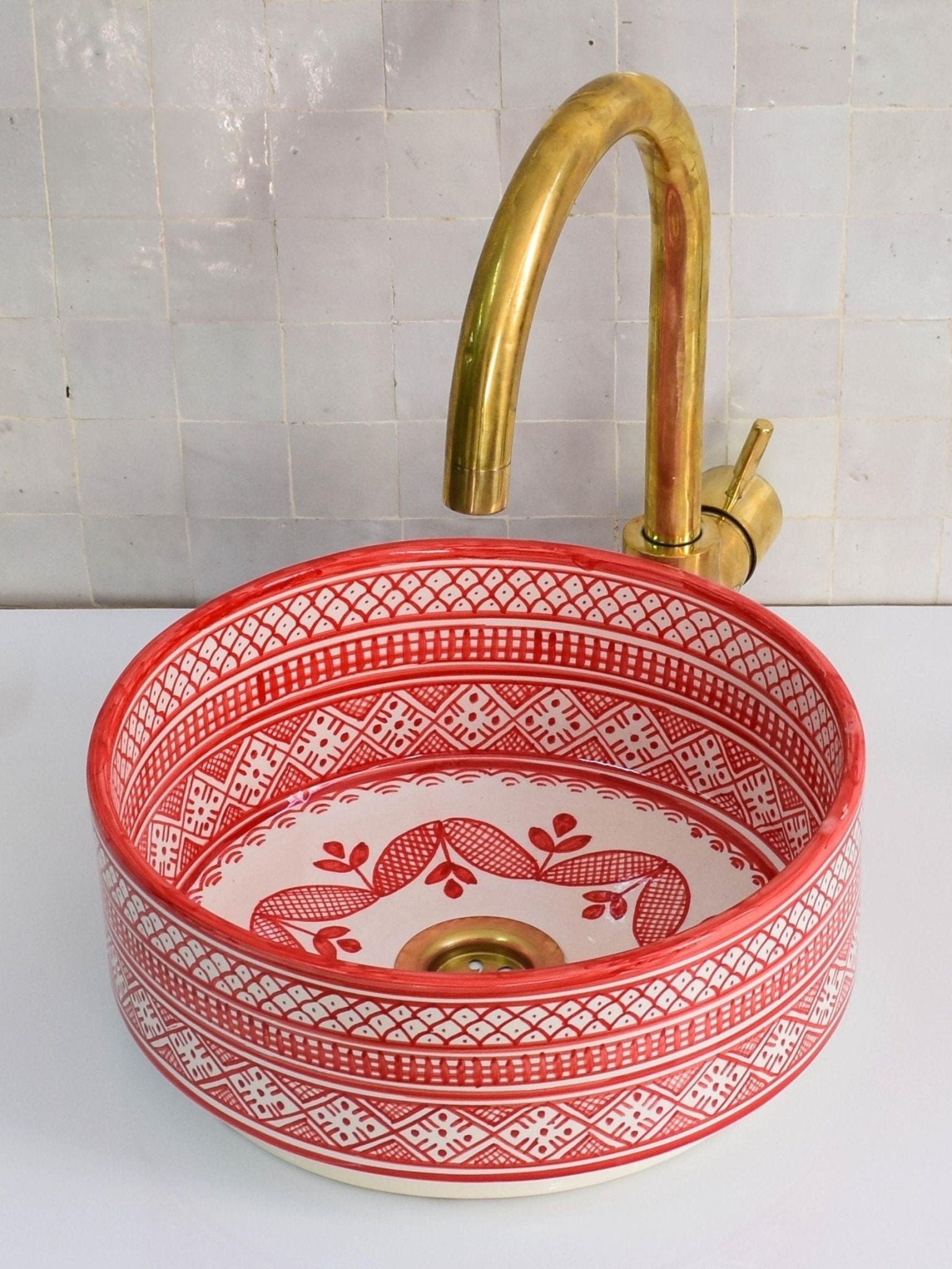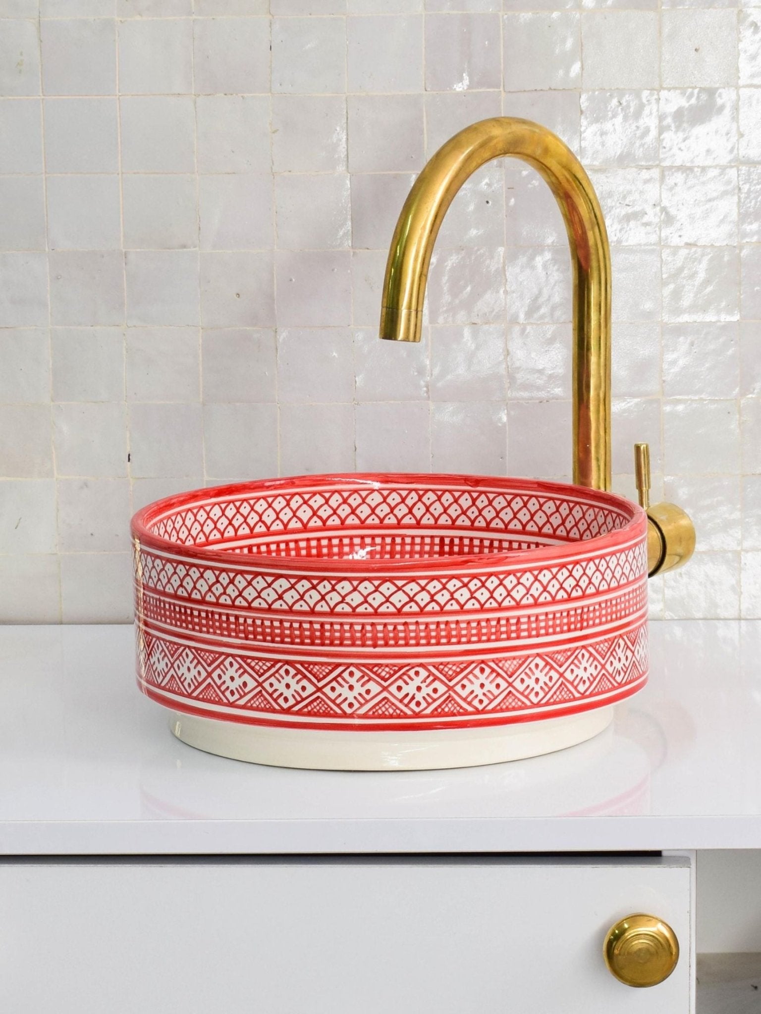 Bristol - Moroccan Round Vanity Sink – Handmade Ceramic Bathroom Basin in Red- (ETAT)