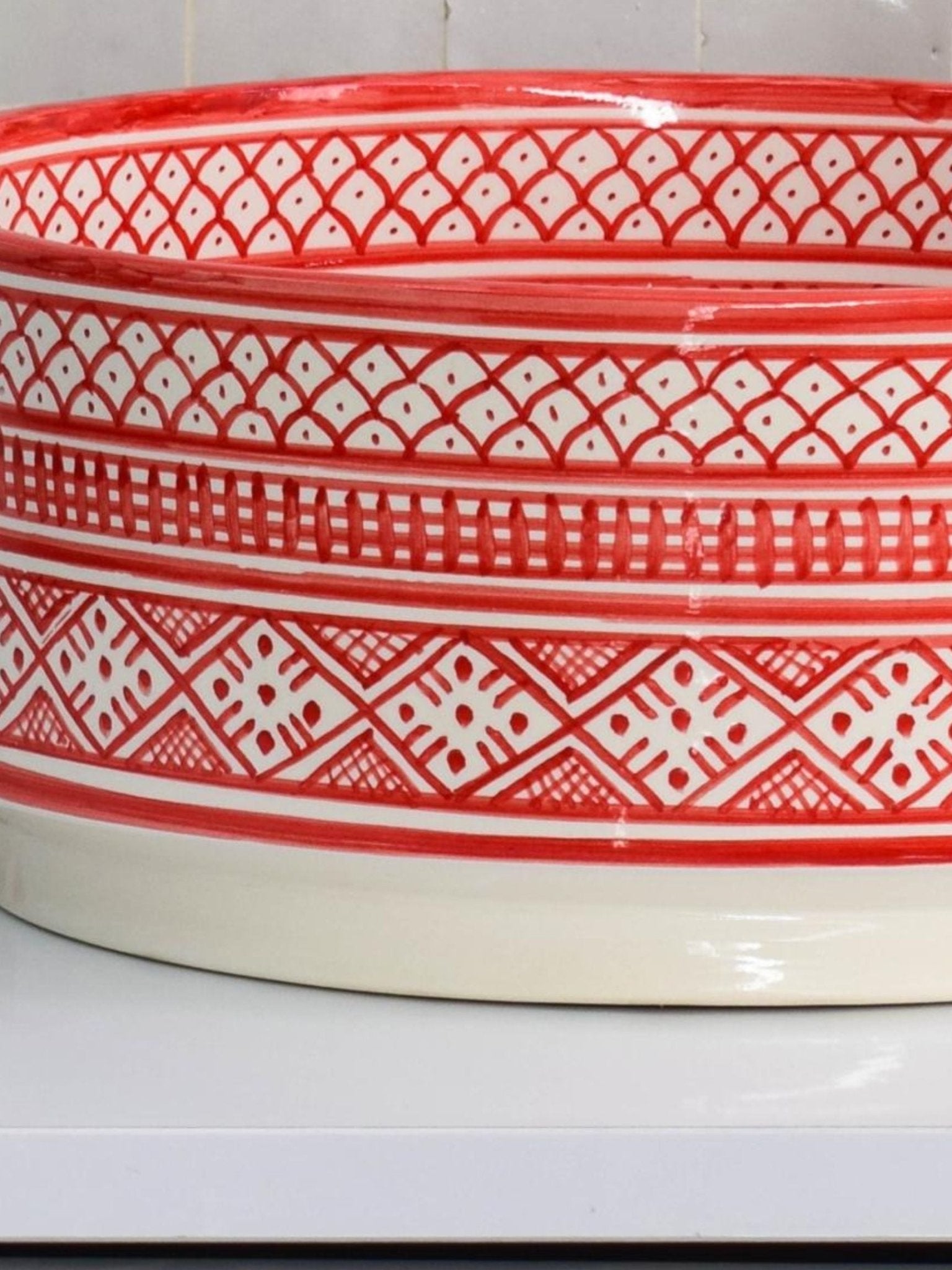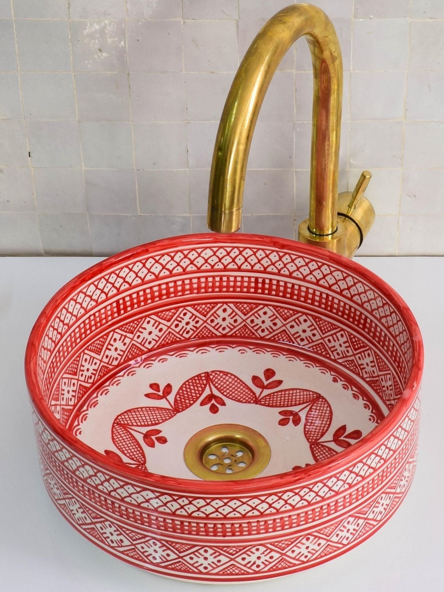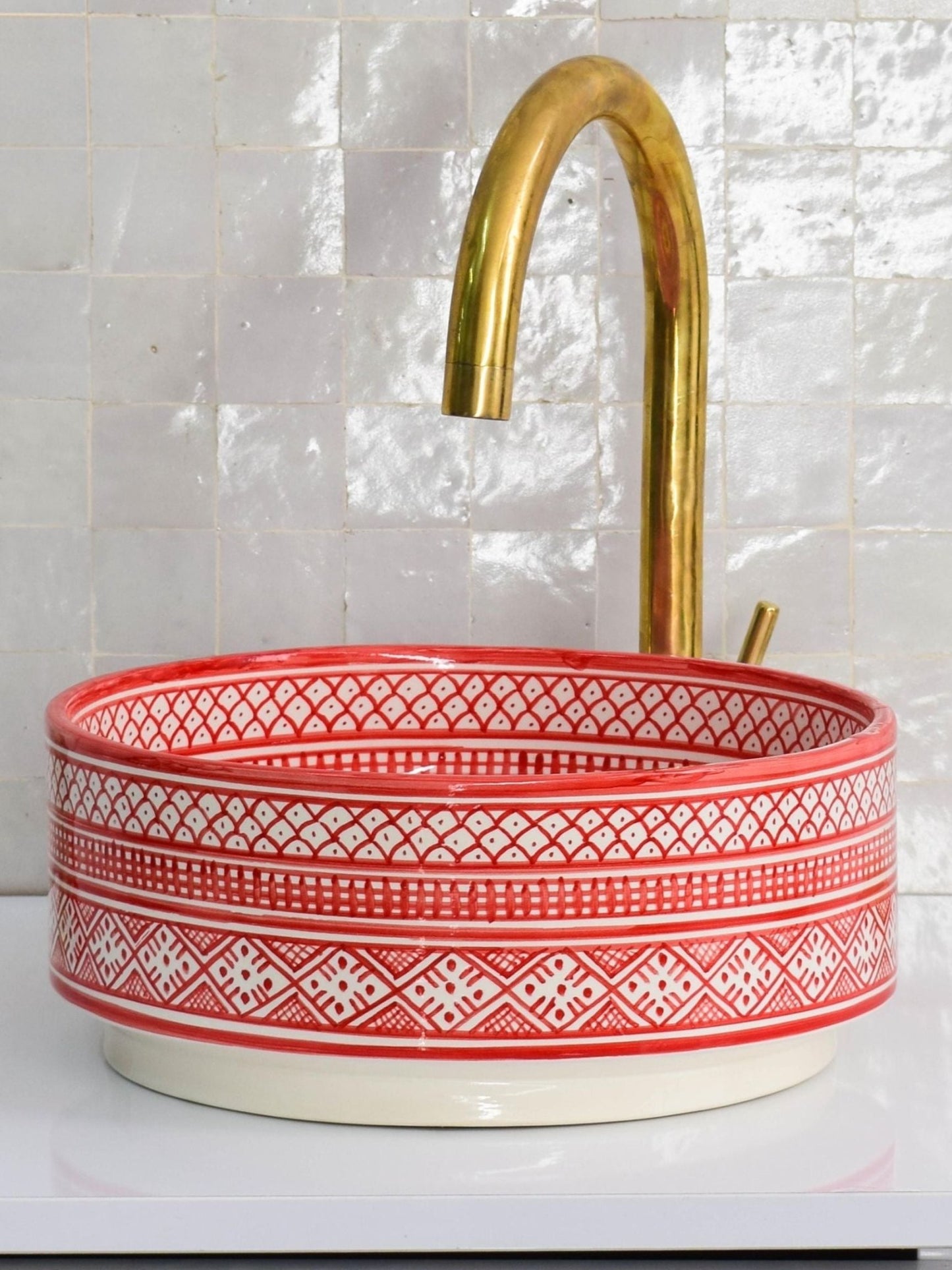 Bristol - Moroccan Round Vanity Sink – Handmade Ceramic Bathroom Basin in Red- (ETAT)
