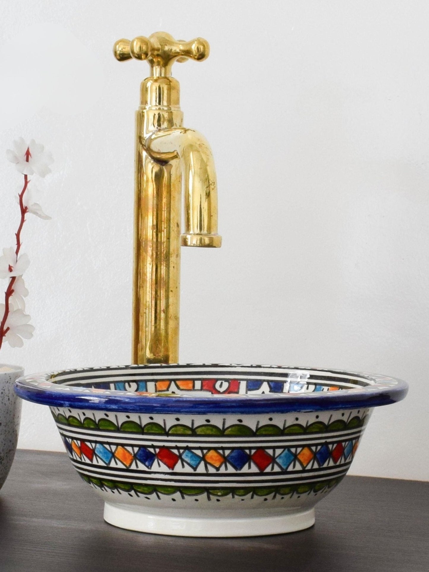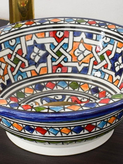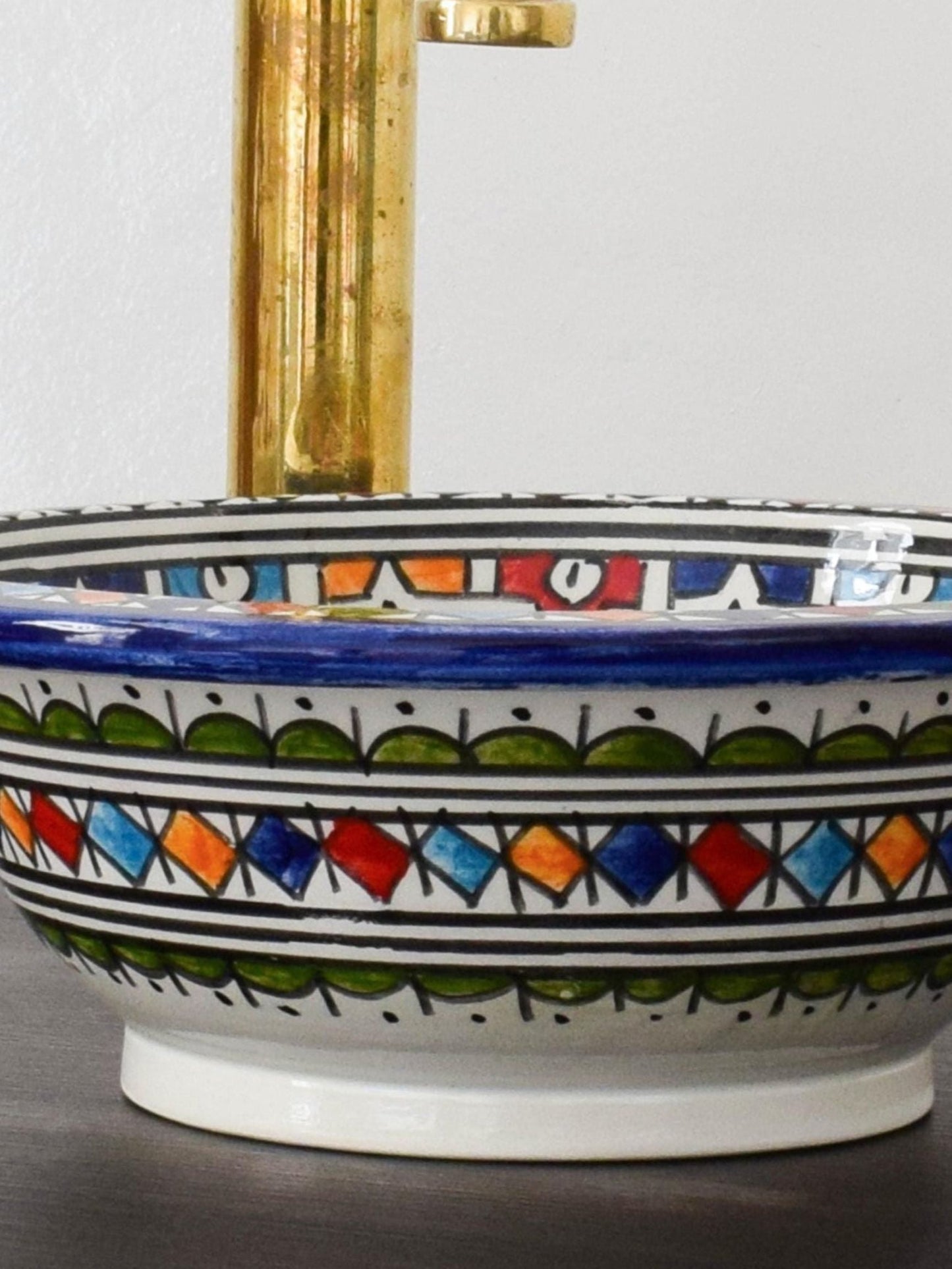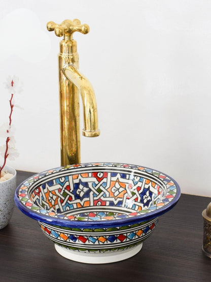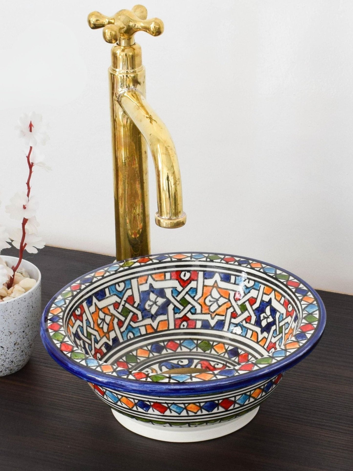 Akaroa - Double Bathroom Sink: Moroccan Handmade, Hand-Painted Joyful Colorful Ceramic Vessel