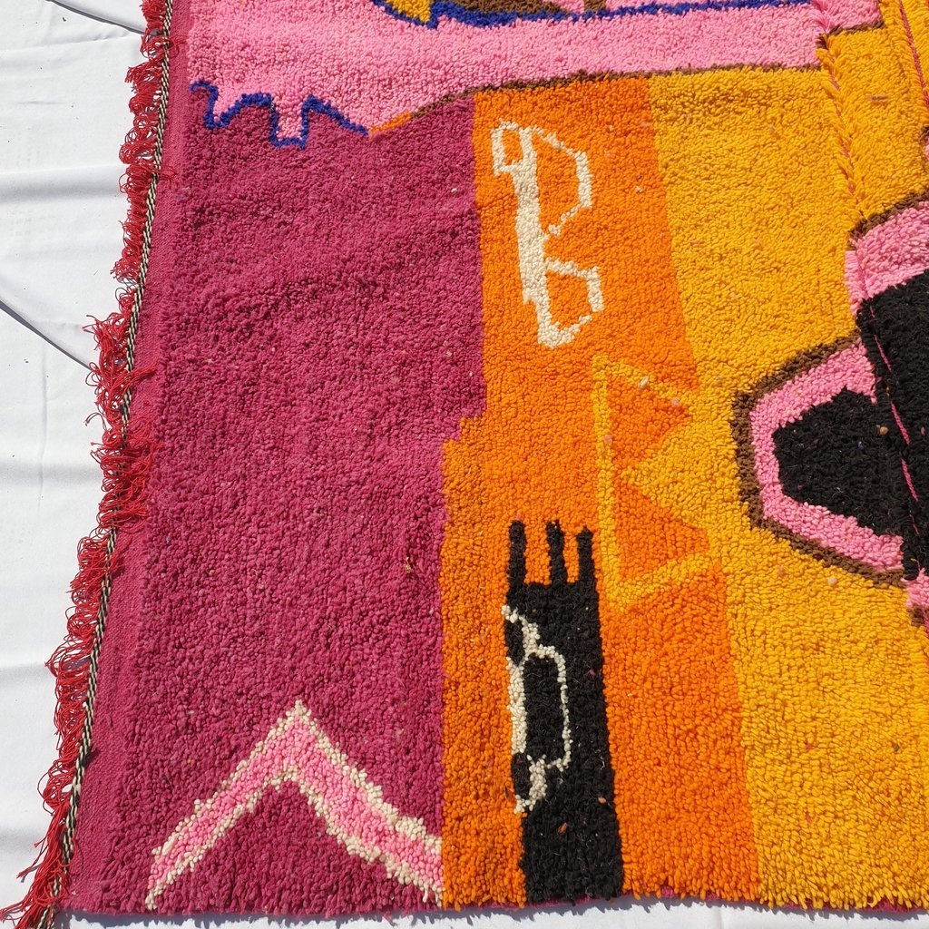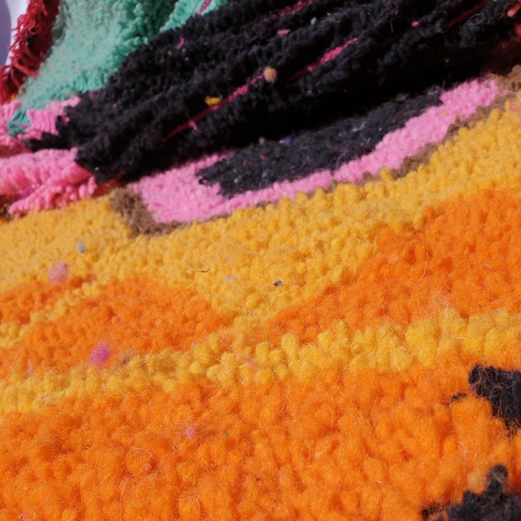 Boujaad, the Amazing Berber lightweight’s rug. The design is Inspired from the Kilim rugs. Named also Hanbal, because of its Boho, Modern, Scandinavian, and traditional Berber Moroccan style, it has only one side, it is usually used for floors or to decorate the walls of the interiors.