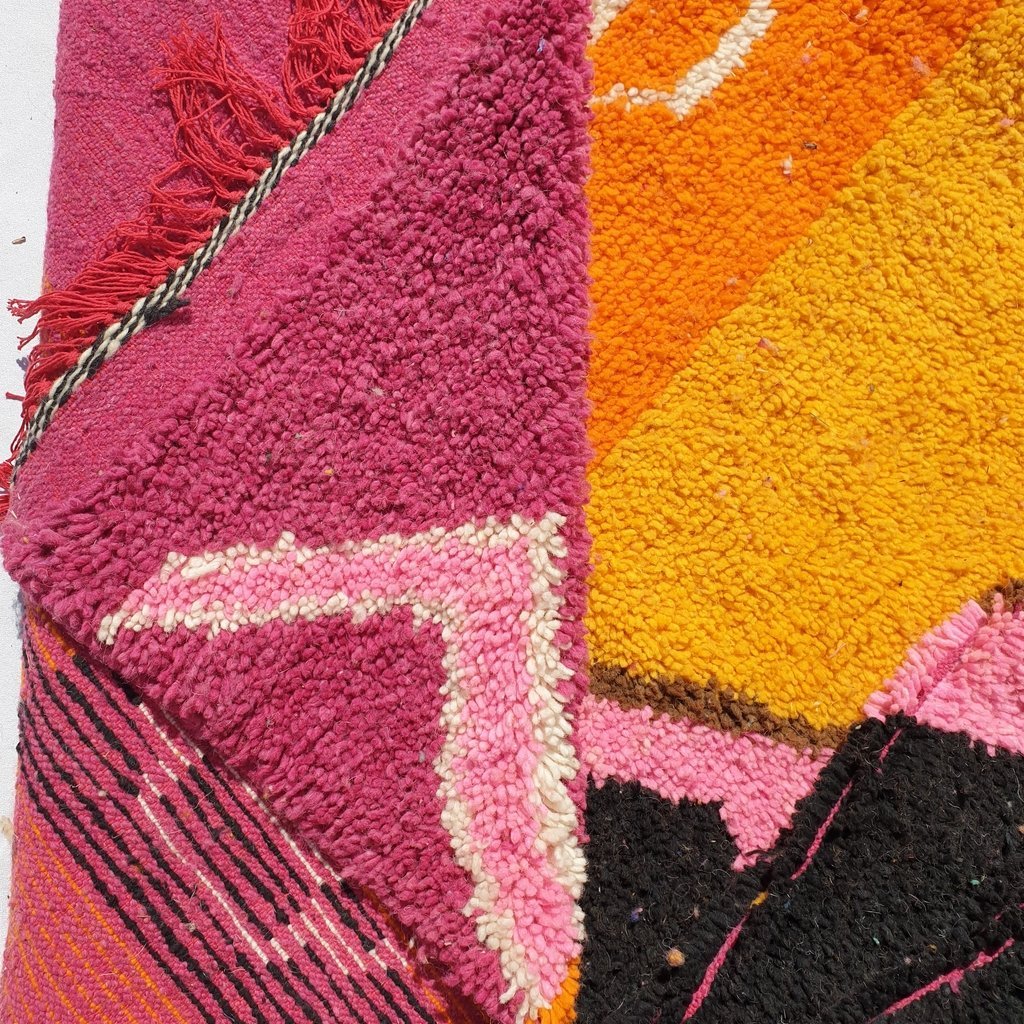 Boujaad rugs originally woven on traditional looms by Berber women in the Atlas Mountains of Morocco. These rugs are all individually handcrafted, each rug is special, unique and different, and you can never find the same pattern. They are made from natural sheep wool with natural dye, and typical knotting techniques practiced by Berber tribes - but with the knot being pulled tighter, those rugs require less wool which allows the weaver to create the intricate geometric patterns things that make Boujaad rugs famous and desired by the whole word and perfect for any indoor or outdoor style.