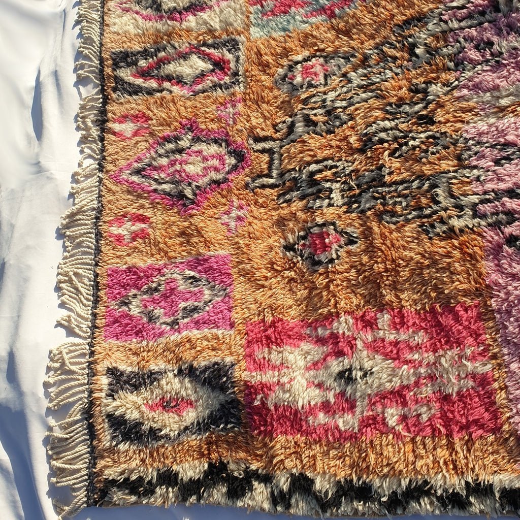 Customized BENI OUARAIN RUG Soft & Thick Pink Orange Living Room Carpet | Moroccan High Pile Area Rug Berber Authentic Wool | 2,6x2 m | Sarhana