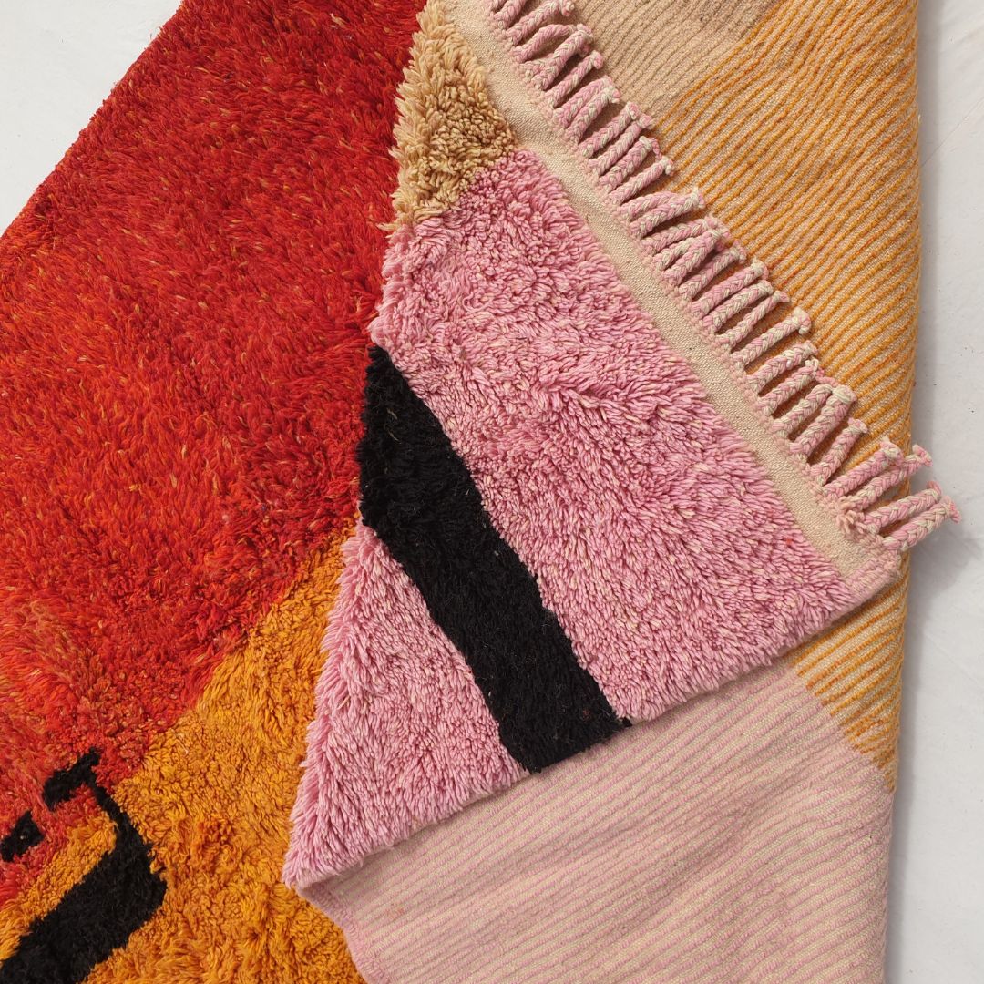 Customized Idouh - Moroccan Rug Pink Orange Beni Ourain | 228x387 cm | Moroccan Colorful Shag Rug | 100% wool handmade