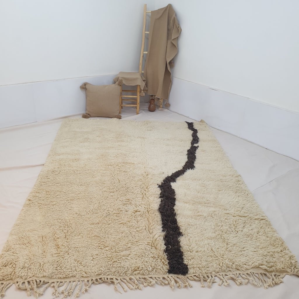 Customized Moroccan Beni rug Ultra Soft & Thick Cream Living Room Carpet | 10'x7' Ft | NAKA | Moroccan Beni Mrirt Rug