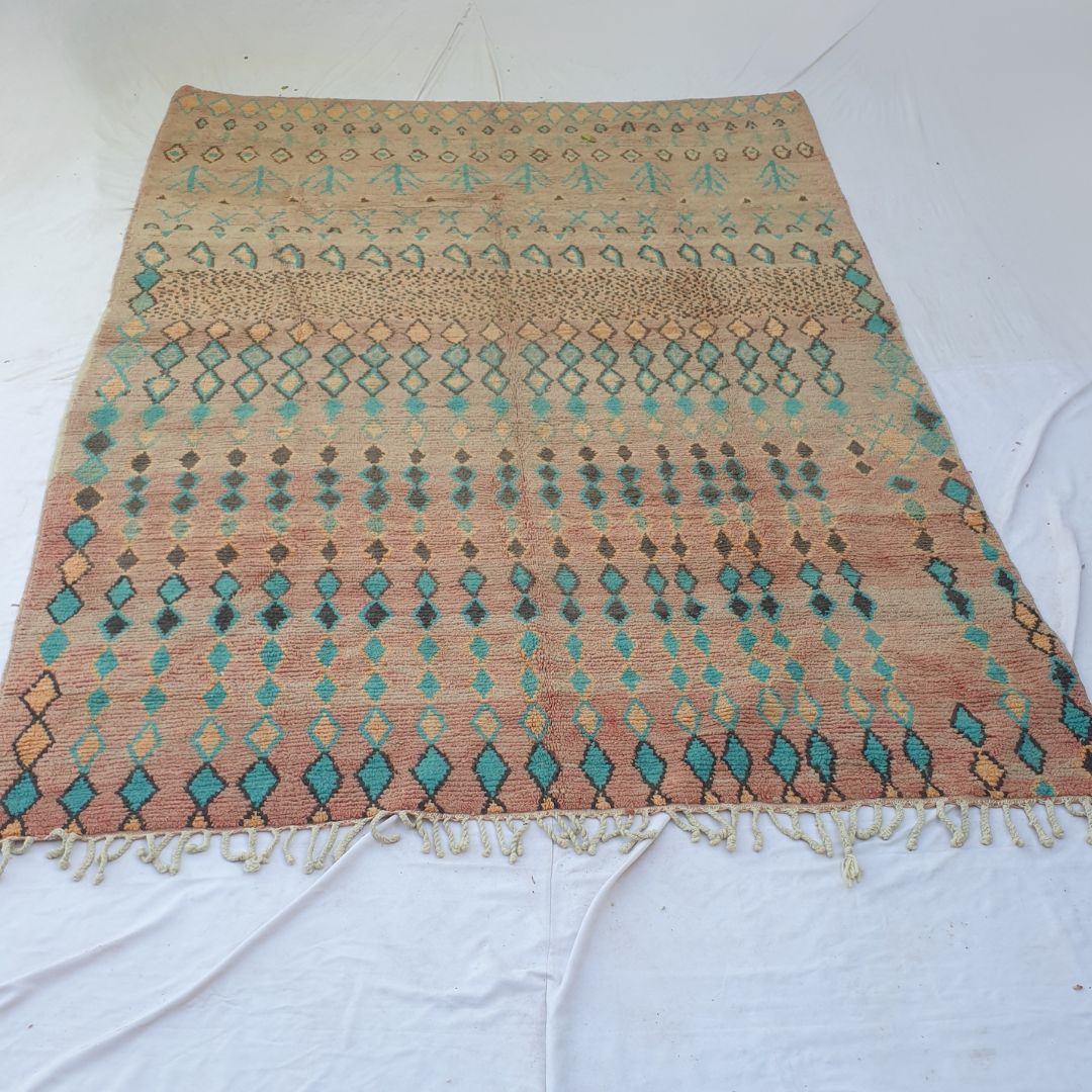 Boujad rugs originally woven on traditional looms by Berber women in the Atlas Mountains of Morocco. These rugs are all individually handcrafted, each rug is special, unique and different, and you can never find the same pattern. They are made from natural sheep wool with natural dye, and typical knotting techniques practiced by Berber tribes - but with the knot being pulled tighter, those rugs require less wool which allows the weaver to create the intricate geometric patterns things that make Boujad rugs famous and desired by the whole word and perfect for any indoor or outdoor style.