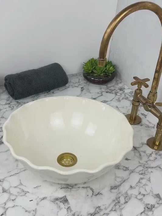 Santorini - Wave Rim Round Vanity Moroccan Sink – White Handmade Ceramic Bathroom Basin - (ETMMT)