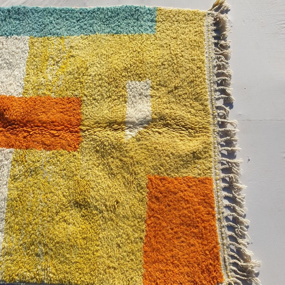 Lamane | Luxurious Golden Yellow 6x9 Moroccan Rug Plush Beni Mrirt Ultra Soft | Authentic Berber wool Beni Rug | 6'63x9'71 Ft | 202x296 cm