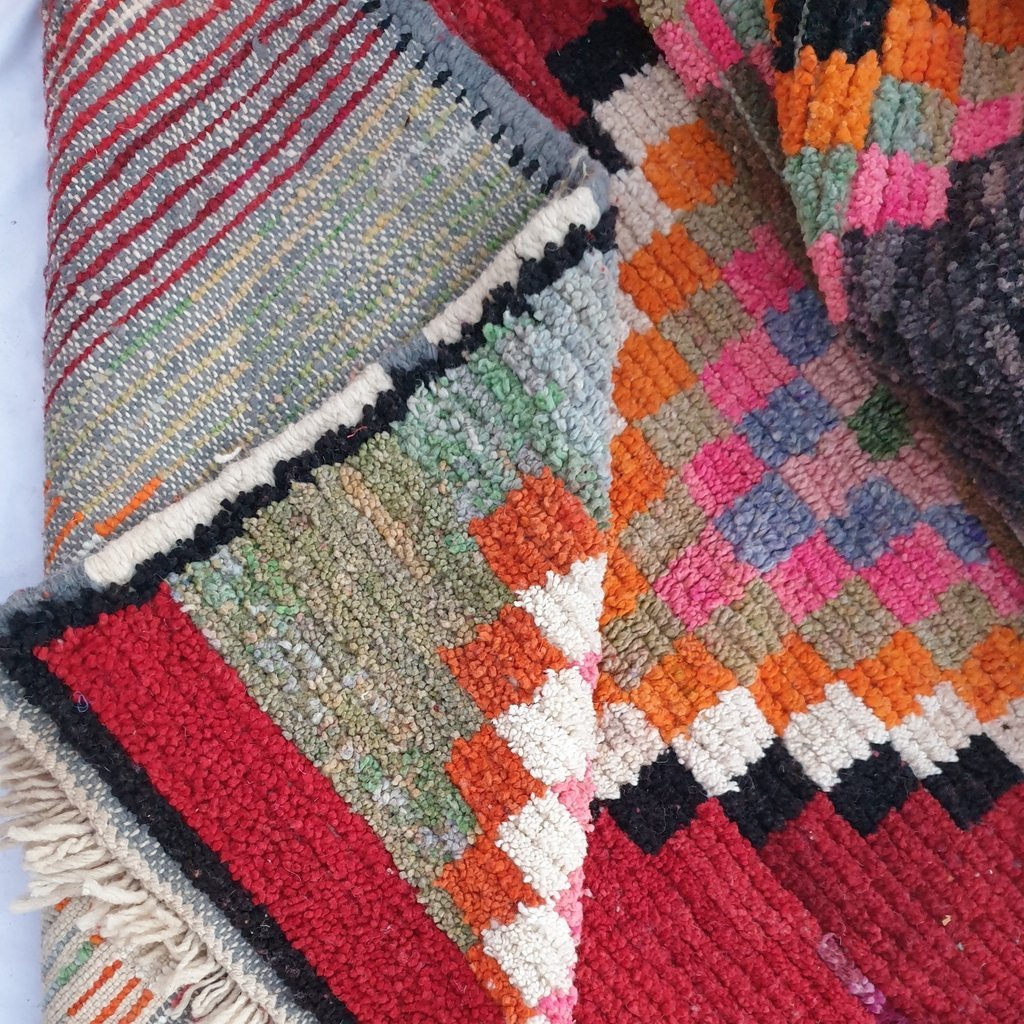 Boujaad, the Amazing Berber lightweight’s rug. The design is Inspired from the Kilim rugs. Named also Hanbal, because of its Boho, Modern, Scandinavian, and traditional Berber Moroccan style, it has only one side, it is usually used for floors or to decorate the walls of the interiors.
