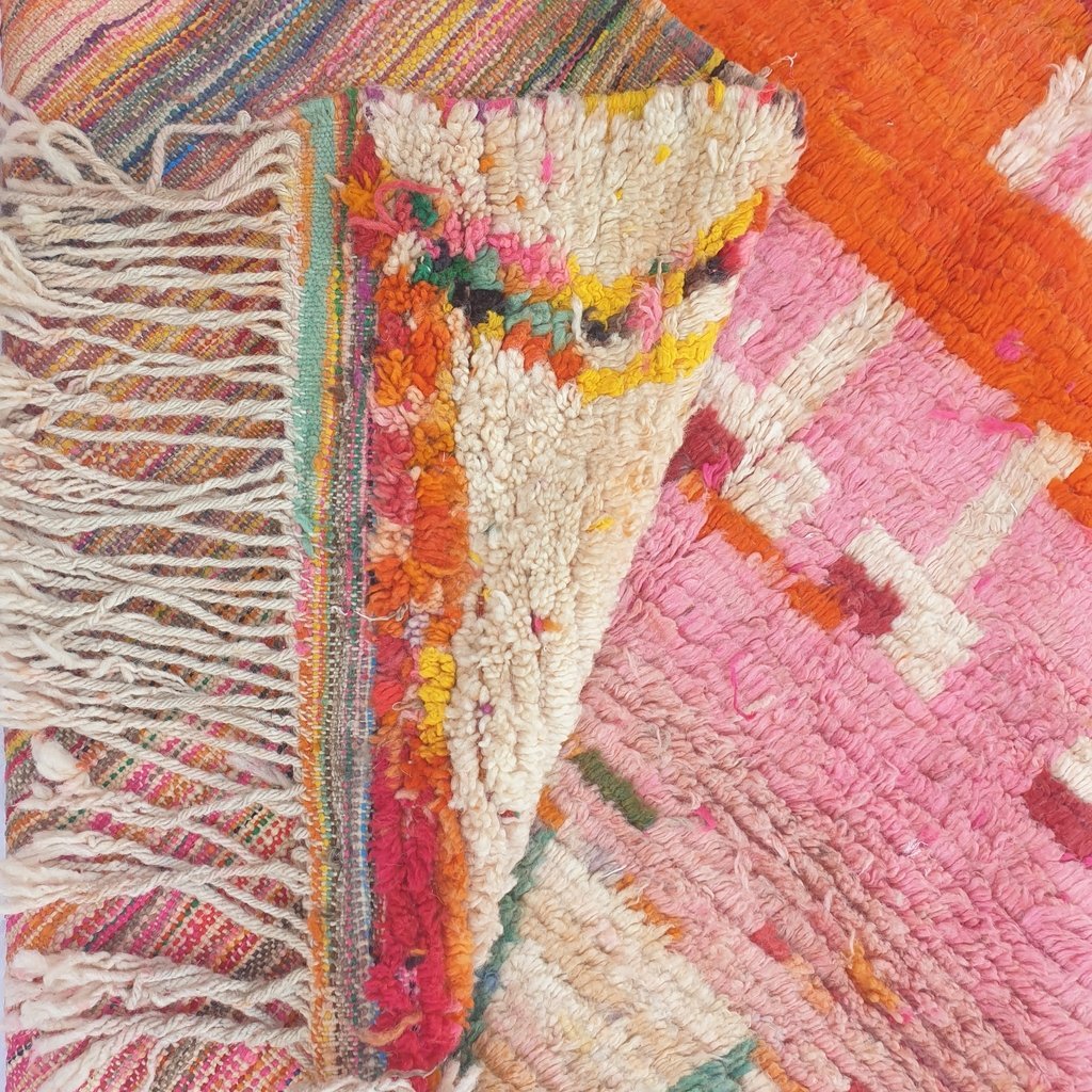 Boujaad, the Amazing Berber lightweight’s rug. The design is Inspired from the Kilim rugs. Named also Hanbal, because of its Boho, Modern, Scandinavian, and traditional Berber Moroccan style, it has only one side, it is usually used for floors or to decorate the walls of the interiors.