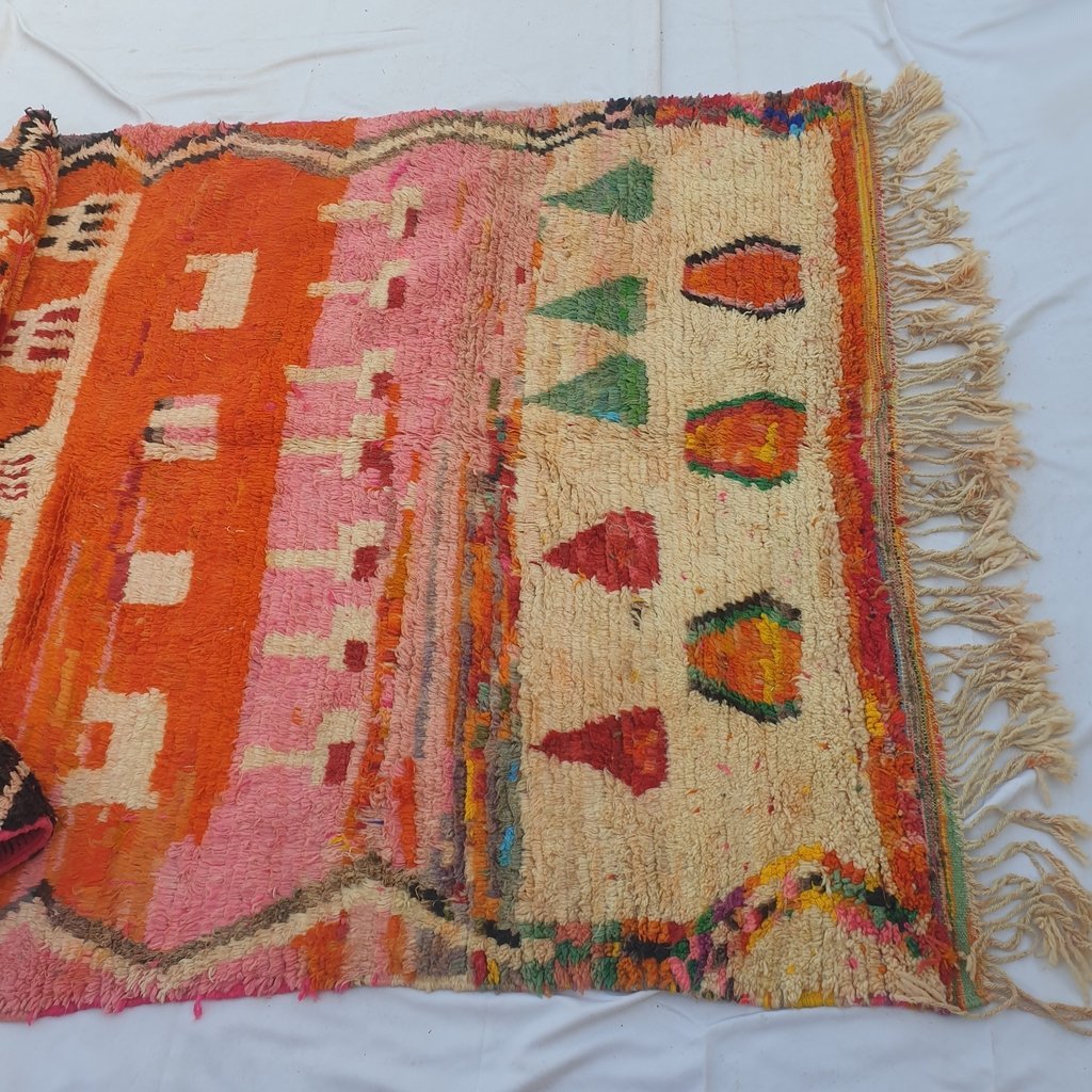 Boujaad rugs originally woven on traditional looms by Berber women in the Atlas Mountains of Morocco. These rugs are all individually handcrafted, each rug is special, unique and different, and you can never find the same pattern. They are made from natural sheep wool with natural dye, and typical knotting techniques practiced by Berber tribes - but with the knot being pulled tighter, those rugs require less wool which allows the weaver to create the intricate geometric patterns things that make Boujaad rugs famous and desired by the whole word and perfect for any indoor or outdoor style.